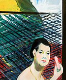 The artist infuses the scene with irony, comedy and light eroticism. One can guess that the charming blonde taking out the trash and her red tights come from Western fashion magazines.