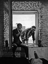Inga: Lina sako, kad galerijos rūsyje yra labai geras apšvietimas, žmonės gražiai atrodo. Pastačiau Andrių, fotografuoju ir man tas juodas fonas inspiravo mintį „prifotošopinti“ dar porą žmonių. Pamaniau, kad mūsų grupei labai tinka, kad tu nesi vienas, o esi trys tu. Na, ir kiekvieną narį atsivedame fotografuoti. Tapo tradicija.