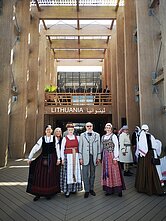 Lietuvos paviljonas, įsikūręs prie pat vieno pagrindinių parodos įėjimų, pastarosiomis dienomis sulaukė dėmesio ne tik dėl savo lokacijos, bet ir dėl paviljoną ryškiomis spalvomis išmarginusių tautinių kostiumų – įspūdinga jų kolekcija ir muzikiniais pasirodymais Lietuvos nacionalinis kultūros centras pristatė 2024 m. šimtmetį minėsiančią Lietuvos dainų šventę.