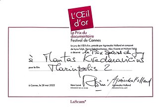 Dokumentinio kino žiuri, kurią sudarė Agnieszka Holland, Iryna Tsilyk, Pierre`as Deladonchampsas, Alexas Vicente`as, Hichamas Falahas, pažymėjo, kad specialus prizas atiteko filmui, „kurio neįmanoma palyginti su jokiu kitu konkurso dalyviu. Labai radikaliam, drąsiam, meniškam ir egzistenciniam kūriniui „Mariupolis 2“. Režisierius Mantas Kvedaravičius yra tarp tūkstančių civilių, žuvusių dėl Rusijos kariuomenės veiksmų nuo plataus masto Putino invazijos pradžios“.