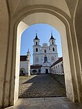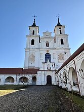 Vienuolyno kiemo galerijos centre yra 1778 metais baigta statyti Kristaus laiptų koplyčia – Poncijaus Piloto rūmų laiptų, kuriuos Šventoji Elena iš Jeruzalės atvežė į Romą, kopija. Viduje du 28 pakopų laiptų maršai – vienu maldininkai keliais pakyla iki viršuje esančio barokinio altoriaus su Nukryžiuotu Kristumi, šv. Marija, šv. Marija Magdaliete ir šv. Jono skulptūromis, kitu maršu maldininkai nusileidžia. Lietuvoje tai vienintelė tokio tipo koplyčia.