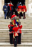 4,1 milijardo pasaulio televizijos žiūrovų, stebėjusių laidotuves, dėmesys buvo sutelktas į aštuonis jaunus vyrus iš Grenadierių gvardijos pulko 1-ojo bataliono. Tai yra seniausias britų kariuomenės pėstininkų dalinys, savo istoriją skaičiuojantis nuo 1656 metų. Jiems vadovavo kuopos seržantas majoras Deanas Jonesas.