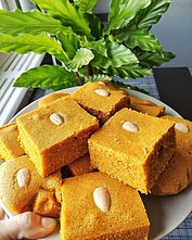 Libanietiško pyrago – sfouf veganiška versija. Labai paprastas, vos kelių ingredientų pyragas su neįprastu pyragams prieskoniu, kuris jį padaro ne tik gražų, bet ir smalsiai gardų.