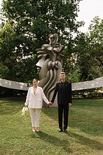Jis atskleidė, kad po ceremonijos jaunavedžių laukė trumpas pasivaikščiojimas juodu su Karolina pakerėjusioje sostinės vietoje, čia ir buvo įamžintos šventės akimirkos šeimos albumui. „Nusprendę nebėgti fotomaratono, pasirinkome mums ypatingą ir, regis, vis dar nedaugelio atrastą vietą – Vilniaus Jeruzalės skulptūrų sodą ir Vlado Vildžiūno galeriją, akį iškart patraukiančią išskirtiniu šlaitiniu stogu ir Barboros Radvilaitės skulptūra priešaky“, – sakė K. Naraškevičius.