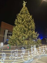 Plungėje suspindo čiurlioniška Kalėdų eglutė