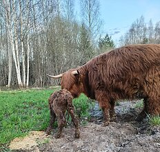 Vasario mėnesį jaunasis ūkininkas iš Biržų rajono Nojus Ambrazevičius LRT.lt jau pasakojo, kaip nekantraudamas laukia, kada jo auginamos gauruotos hailendų veislės karvutės atsives palikuonių. Ir pagaliau praėjusį sekmadienį jis sulaukė pirmojo mažylio, o po poros dienų – dar vieno. Šia žinia su LRT.lt pasidalijęs 23 m. ūkininkas neslėpė džiaugsmo.