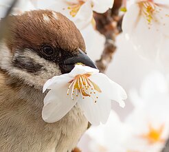 Gamtos mylėtojas taip pat įamžino ant sakurų nutūpusią liepsnelę ir juodąjį strazdą.