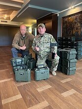 „Planavome vežti iš trijų įrangos dalių sukomplektuotus pilnus paketus, tačiau dėl aktyvių priešo veiksmų fronte matydami vis didesnį individualių antidronų poreikį, sutarėme su gamintoju ir jiems suderinome atskirą logistikos liniją. Todėl juos vežame spartesniu tempu, vos tik gauname iš gamintojo – kad tik greičiau pasiektų frontą ir saugotų karius“, – sako J. Ohmanas.