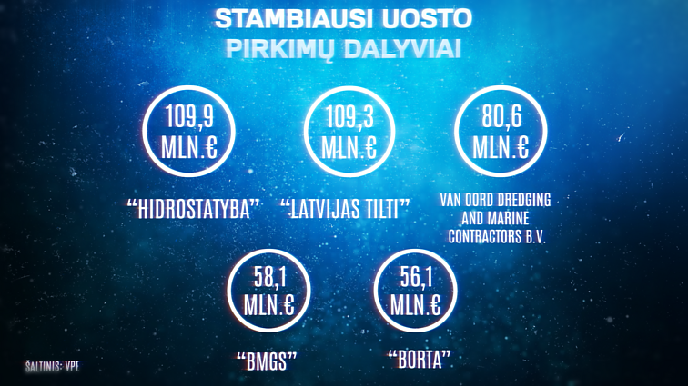Vis dėlto kai kurioms bendrovėms uosto konkursuose sekasi labiau nei kitoms. LRT tyrimų skyriaus išanalizuoti pirkimų duomenys rodo, kad didžiąją dalį statybos darbų valstybiniame jūrų uoste dalijasi kelios bendrovės.