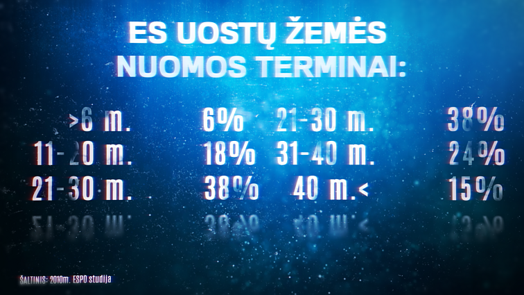Lietuva – viena iš nedaugelio ES šalių, kurioje nuomos terminai uosto žemėje yra patys ilgiausi. 2010 m. Europos jūrų uostų organizacijos (ESPO) užsakytoje studijoje teigiama, kad tik 15 proc. Europos jūrų uostų žemę nuomoja ilgesniam nei 40 metų terminui. Daugumoje uostų vidutinis žemės nuomos terminas yra 21–30 metų.