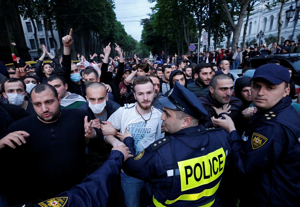 Tbilisio policija ėmėsi veiksmų sostinės Rustavelio prospekte, kraštutinių dešiniųjų jėgų šalininkams bandant prasiveržti prie parlamento pastato, kur vyksta protesto akcija prieš griežtą vyriausybės kovos su narkomanija politiką.