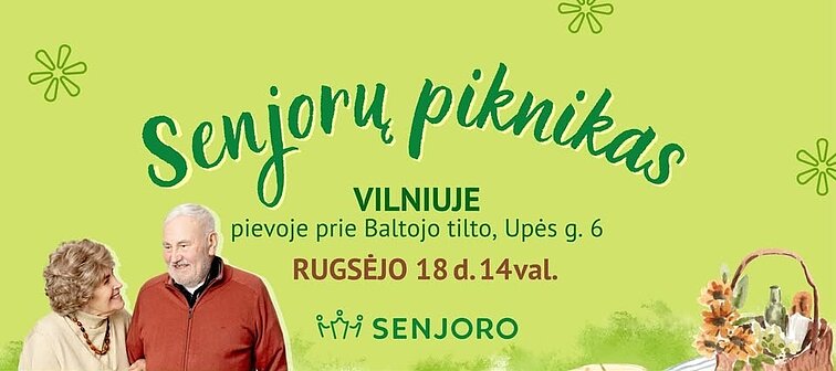 Tą inicjatywą organizacja SENJORO pragnie wspierać przyjaźń wśród seniorów oraz inspirować ich do tworzenia miłych chwil w codziennym życiu. „Piknik Seniorów” to okazja do spotkania, rozmowy, wspólnego tworzenia, dzielenia się uśmiechami i jedzeniem oraz świętowania swojego srebrnego wieku. „Pikniki Seniorów” odbędą się aż w 14 miastach Litwy. Podczas pikniku w Wilnie zaprosimy nie tylko do degustacji i rozmów, ale także do udziału w różnych aktywnościach.