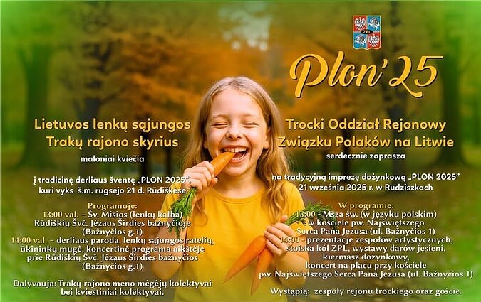 21 września o godz. 13:00 Trocki Oddział Rejonowy ZPL zaprasza do Rudziszek na tradycyjną imprezę dożynkową „Plon 2025”.