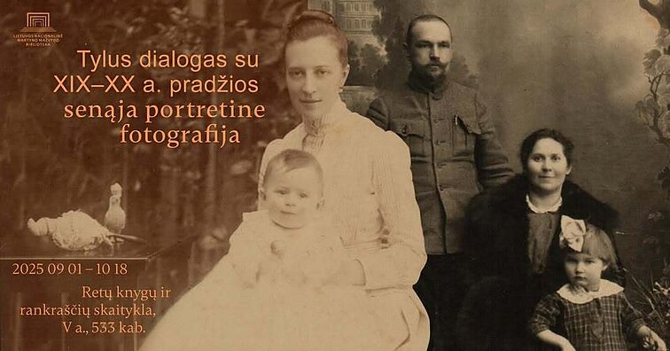 Dział Rzadkich Książek i Rękopisów Litewskiej Biblioteki Narodowej im. Martynasa Mažvydasa prezentuje wystawę „Cicha rozmowa ze starą fotografią portretową z przełomu XIX i XX wieku”, na której eksponowane są znaczące przykłady dziedzictwa fotograficznego XIX – pocz. XX w. z kolekcji Biblioteki Narodowej. Te ikonograficzne dokumenty świadczą o rozwoju wczesnej fotografii, kontekstach kulturowych, sposobach wizualnej reprezentacji w ówczesnym społeczeństwie oraz o nieprzerwanym biegu biografii i historii.