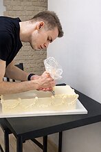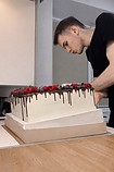 – Chyba właśnie ten długi tort, o którym wcześniej wspominałem. Widziałem podobne realizacje w Internecie, nawet jeszcze dłuższe. Niektórzy robili takie torty w formie bardziej przypominającej ciasto, a nie klasyczny tort. Bardzo chciałem spróbować czegoś takiego i zobaczyć, jak się z tym pracuje. To było jedno z najciekawszych zamówień, jakie miałem okazję zrealizować.
