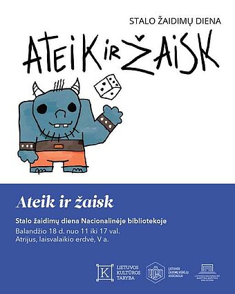 Litewska Biblioteka Narodowa im. Martynasa Mažvydasa wraz z Litewskim Stowarzyszeniem Twórców Gier zapraszają 18 kwietnia na dzień gier planszowych „Przyjdź i zagraj”. W godzinach 11:00–17:00 na 5. piętrze czekać będzie mnóstwo gier oraz przyjazna społeczność.