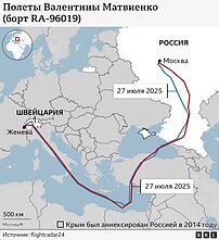 Для того, чтобы самолет с Матвиенко на борту мог попасть в Женеву, Швейцария обратилась с просьбой пропустить борт к властям Италии и Франции, писало агентство Bloomberg. По данным издания, Рим согласился после консультации с Парижем. В итоге на пути туда правительственный борт летел через Италию, а на пути обратно немного зашел и в воздушное пространство Франции.